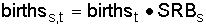 The number of births in a year is calculated from the number of women of reproductive age, the TFR and the age distribution of fertility.