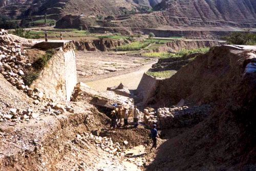 A huge landslide washed away a bridge of a main road on the Chinese Loess Plateau. Picture by Mark Dekkers