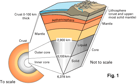 | Mantle | O, Si, Fe, Mg | 40 - 2891 |