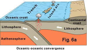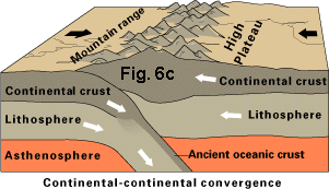 3.2. Convergent plate boundaries , are plate boundaries where plates collide and one sinks beneath the other, returning existing lithosphere to the earth's interior (Figs. 6a-c).