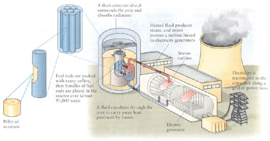 In a nuclear reactor, however, fuel rods containing 235U-enriched uranium oxide are typically separated by control rods containing a neutron-absorbing material (e.g. graphite, boron). Reaction progress in this, the reactor core, is controlled by withdrawing or advancing the control rods. The core is cooled by circulating a fluid and the heat energy removed is used to drive steam turbines that in turn generate electricity (Figure 1). Currently, about 16% of the world's electricity is nuclear-derived (~400 235U reactors). In the U.S., the proportion is ~20% rising to over 50% in France and Japan where fossil fuels are scarce.