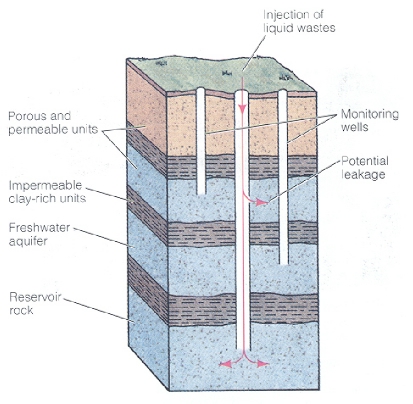 Figure 10. Deep-well disposal of hazardous liquid waste by injection into a hydrologically isolated porous rock unit.