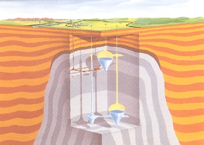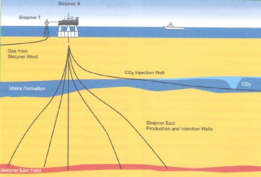 Figure 12. Disposal of CO2 in a saline aquifer, after separation during production from a natural gas reservoir. This is a pilot scheme already in operation in the North Sea to investigate the potential of the method for reducingCO2 emissions during gas extraction.